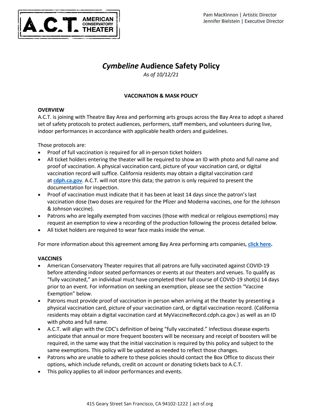 For our full COVID-19 audience safety policy, click here.